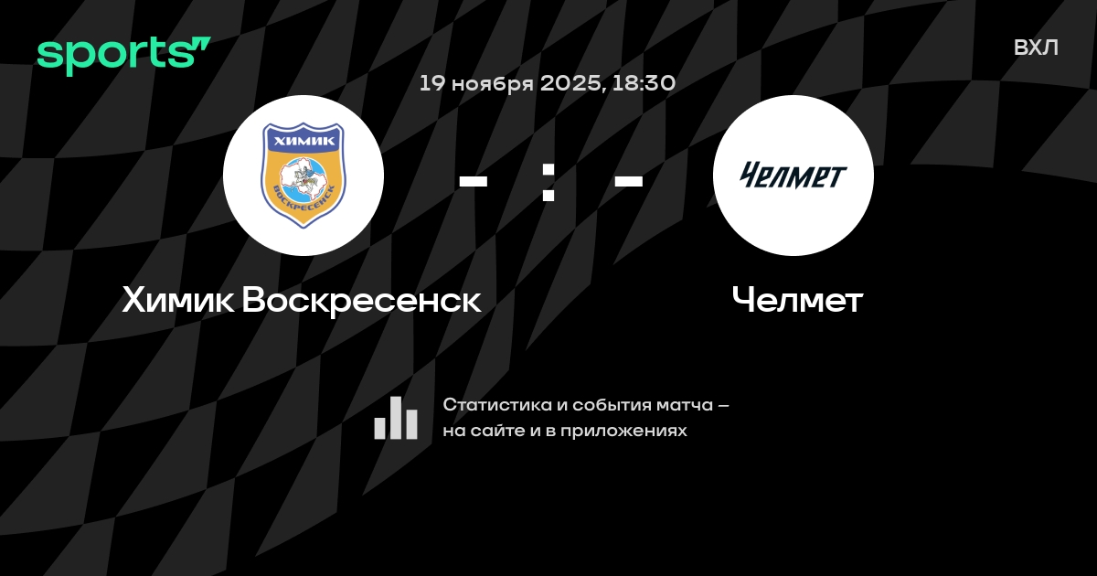 В предстоящем матче в рамках турнира ВХЛ пройдет встреча команд Химик Воскресенск - Челмет в городе на стадионе Podmoskovie Ice Palace.