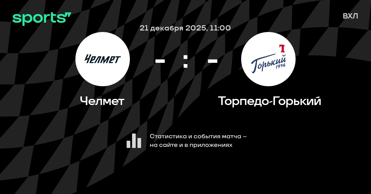 В предстоящем матче в рамках турнира ВХЛ пройдет встреча команд Челмет - Торпедо-Горький в городе на стадионе Sports Palace Yunost.