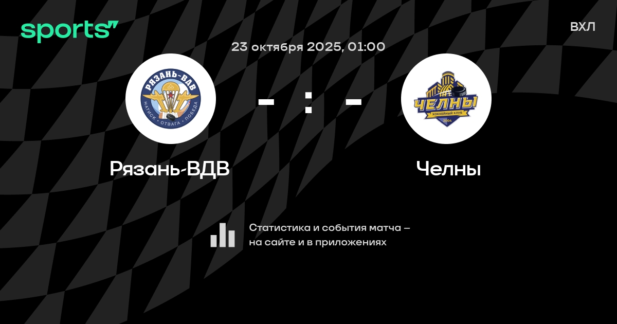 В предстоящем матче в рамках турнира ВХЛ пройдет встреча команд Рязань-ВДВ - Челны в городе на стадионе The Palace of sports Olimpiyskiy.