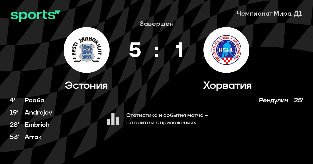 В прошедшем матче в рамках турнира Чемпионат Мира. Д1 (Группа B) состоялась встреча команд Эстония - Хорватия в городе Kaunas на стадионе Žalgirio Arena