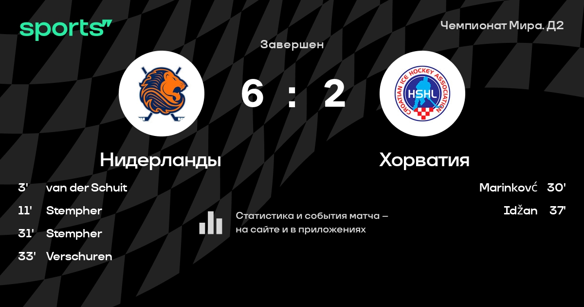 В прошедшем матче в рамках турнира Чемпионат Мира. Д2 состоялась встреча команд Нидерланды - Хорватия в городе на стадионе Klizalište Velesajam