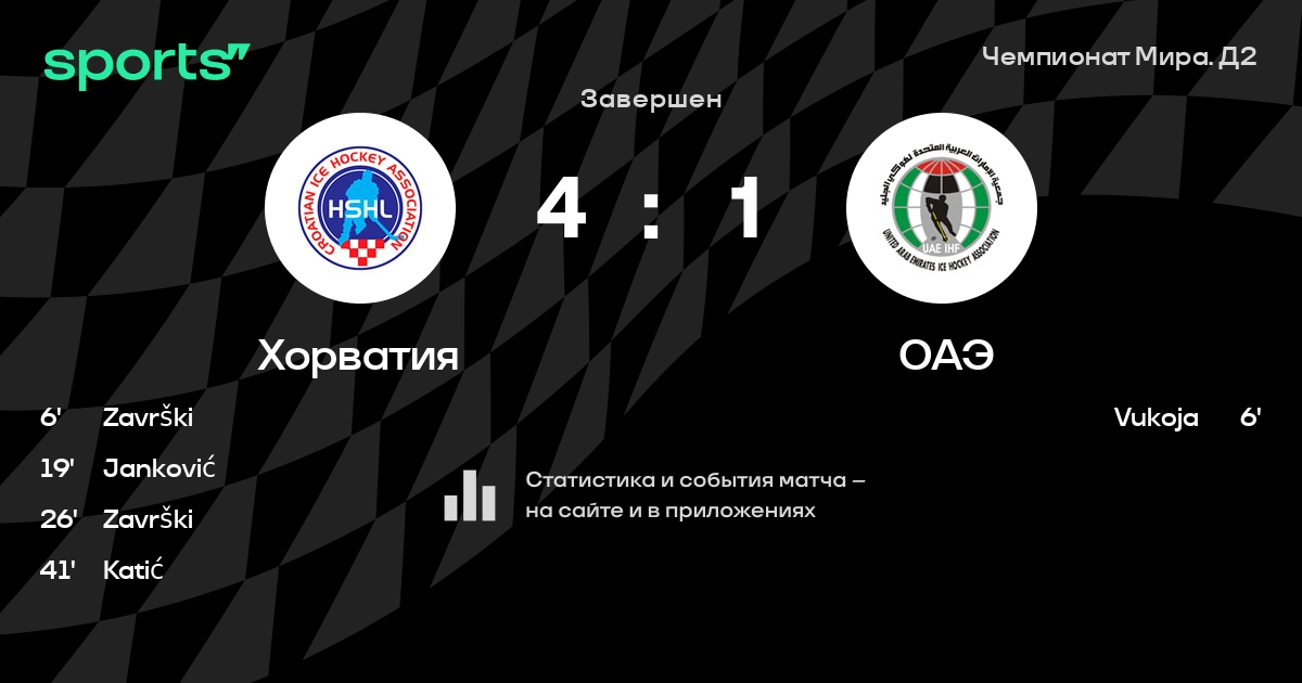 В прошедшем матче в рамках турнира Чемпионат Мира. Д2 состоялась встреча команд Хорватия - ОАЭ в городе Belgrade на стадионе Pionir Ice Hall
