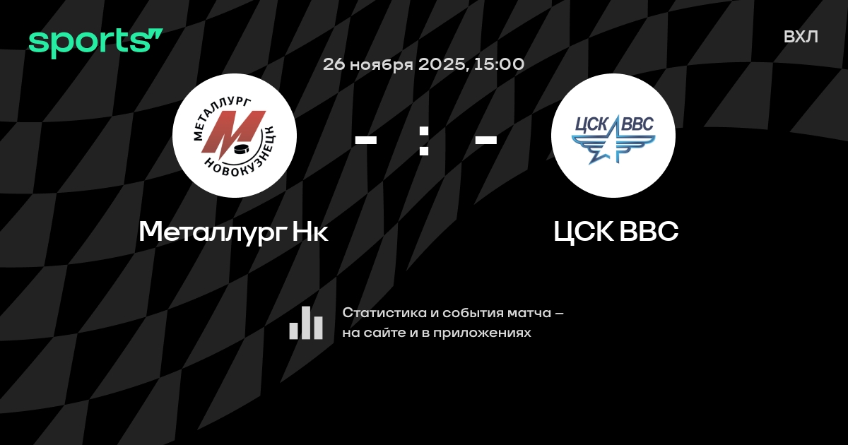 В предстоящем матче в рамках турнира ВХЛ пройдет встреча команд Металлург Нк - ЦСК ВВС в городе на стадионе Dvorets sporta Kuznetsk Metallurg.