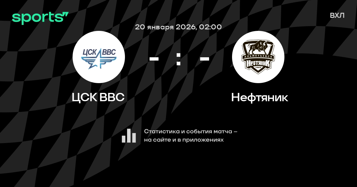 В предстоящем матче в рамках турнира ВХЛ пройдет встреча команд ЦСК ВВС - Нефтяник в городе на стадионе Dvorets sporta im. V. S. Vysotskogo.