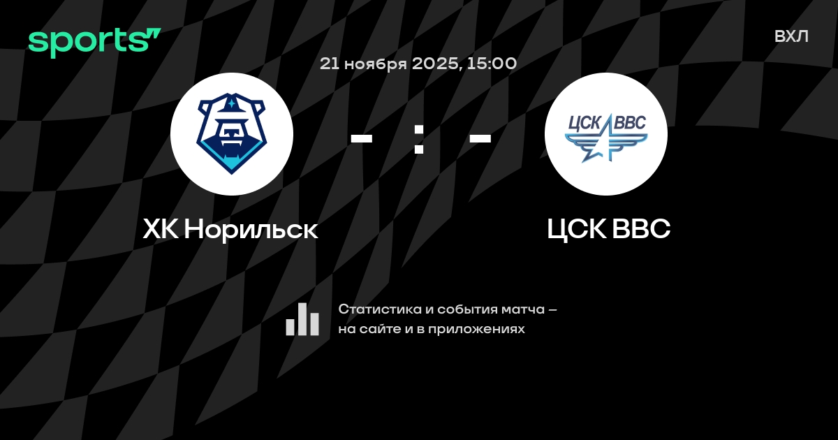 В предстоящем матче в рамках турнира ВХЛ пройдет встреча команд ХК Норильск - ЦСК ВВС в городе на стадионе Dvorets Sporta Arktika.