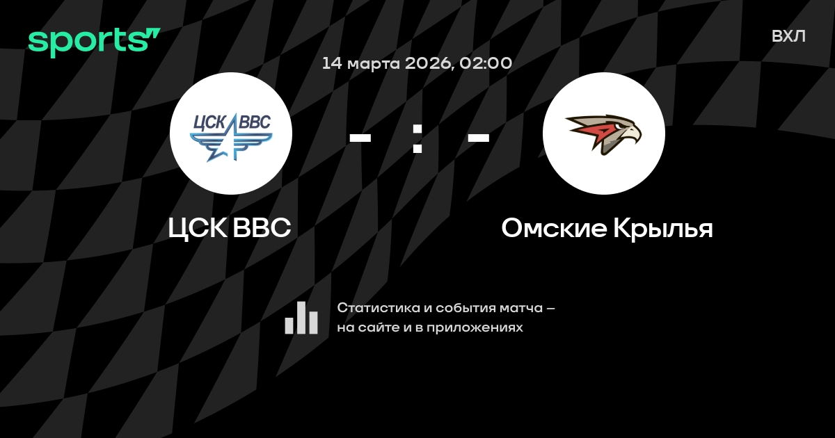 В предстоящем матче в рамках турнира ВХЛ пройдет встреча команд ЦСК ВВС - Омские Крылья в городе на стадионе Dvorets sporta im. V. S. Vysotskogo.