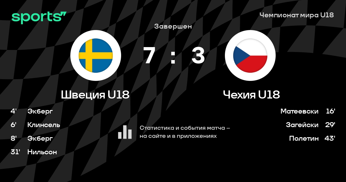 Как прошел матч, смотрите в текстовой трансляции Швеция U18 - Чехия U18 на Sports.ru