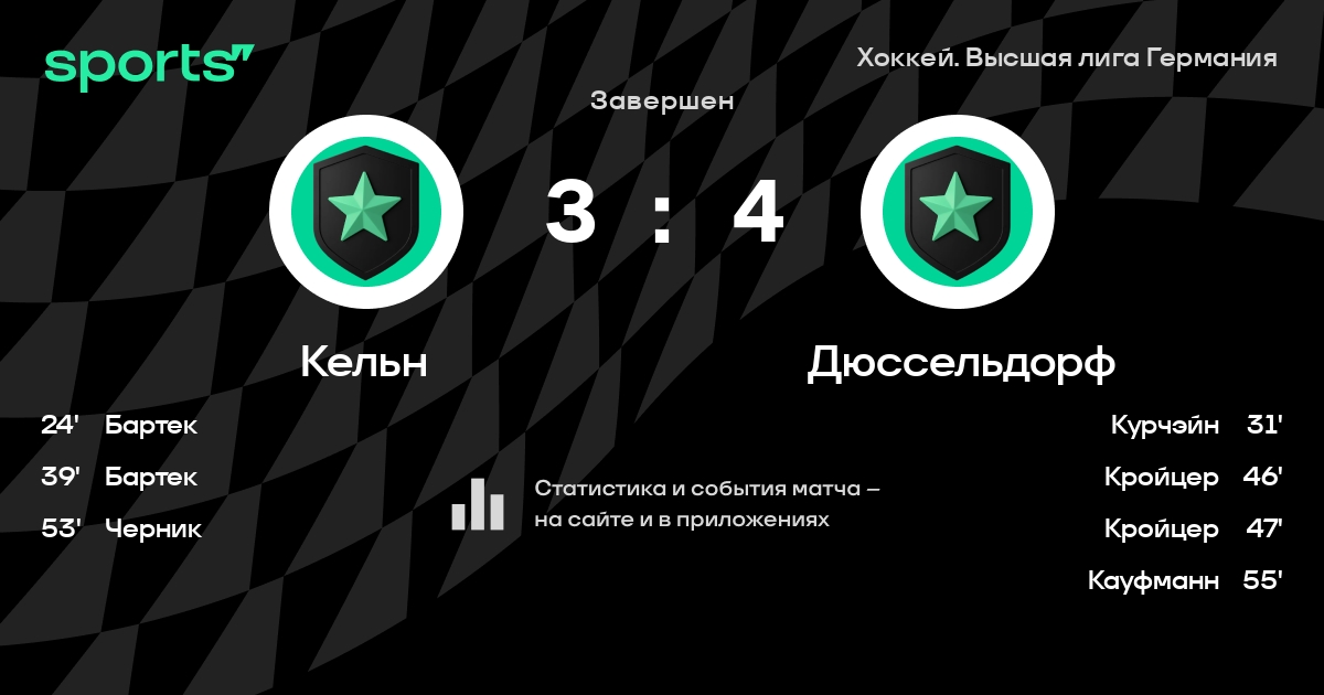 В прошедшем матче в рамках турнира Хоккей. Высшая лига Германия состоялась встреча команд Кельн - Дюссельдорф