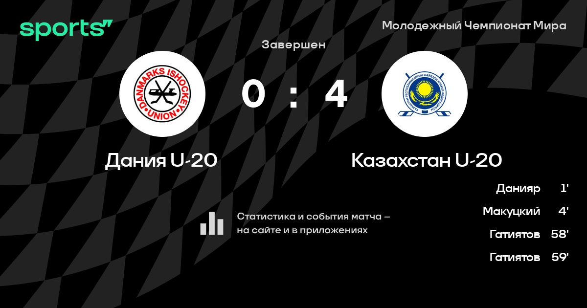 В прошедшем матче в рамках турнира Молодежный Чемпионат Мира (Утешительный раунд) состоялась встреча команд Дания U-20 - Казахстан U-20 в городе Ванкувер (Канада) на стадионе Rogers Arena (вместимость - 18860)