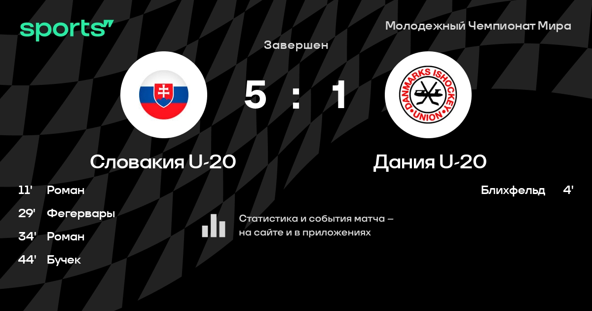 В прошедшем матче в рамках турнира Молодежный Чемпионат Мира (Групповая стадия) состоялась встреча команд Словакия U-20 - Дания U-20 в городе Buffalo на стадионе HarborCenter