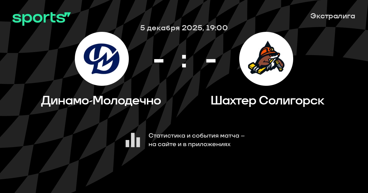 В предстоящем матче в рамках турнира Экстралига пройдет встреча команд Динамо-Молодечно - Шахтер Солигорск в городе Молодечно (Беларусь) на стадионе Ледовый дворец Молодечно (вместимость - 2000).