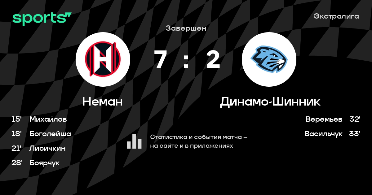 В прошедшем матче в рамках турнира Экстралига состоялась встреча команд Неман - Динамо-Шинник в городе Гродно (Беларусь) на стадионе Ледовый дворец спорта Гродно (вместимость - 2500)