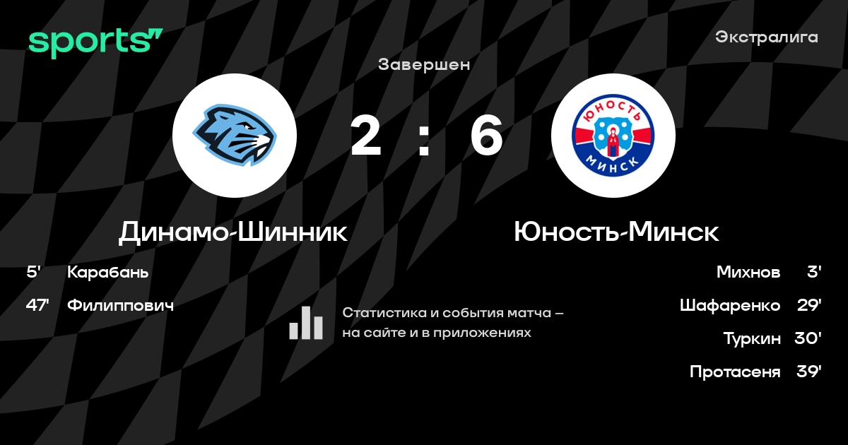 В прошедшем матче в рамках турнира Экстралига состоялась встреча команд Динамо-Шинник - Юность-Минск в городе Бобруйск (Беларусь) на стадионе Бобруйск-Арена (вместимость - 7191)