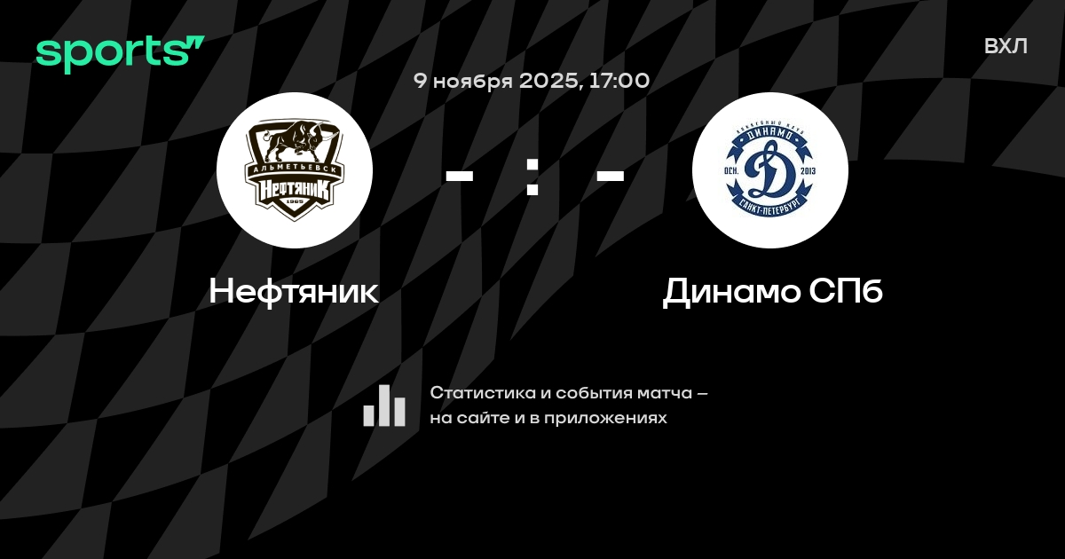 В предстоящем матче в рамках турнира ВХЛ пройдет встреча команд Нефтяник - Динамо СПб в городе  на стадионе Dvorets Sporta Yubileynyy.