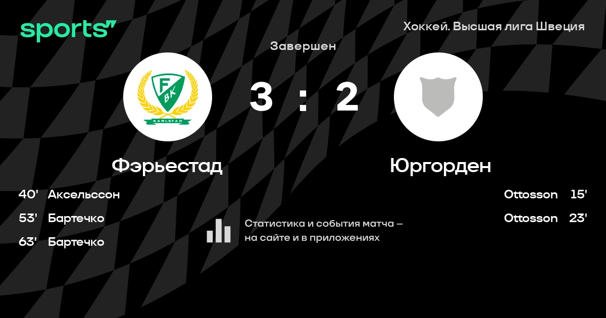В прошедшем матче в рамках турнира Хоккей. Высшая лига Швеция состоялась встреча команд Фэрьестад - Юргорден