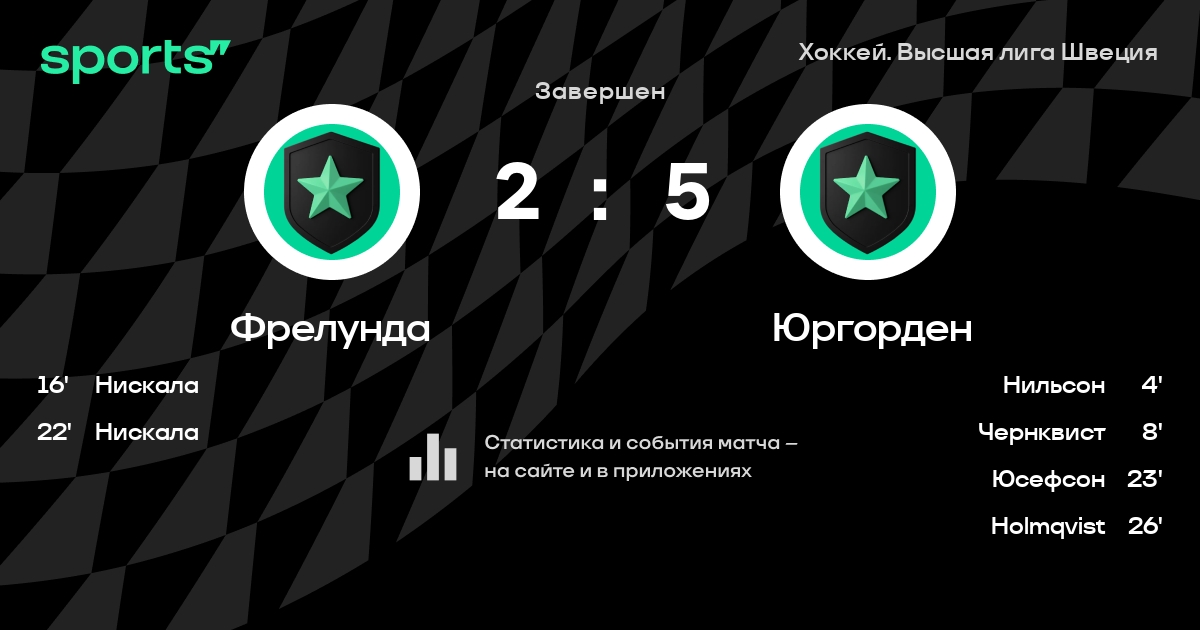 В прошедшем матче в рамках турнира Хоккей. Высшая лига Швеция состоялась встреча команд Фрелунда - Юргорден