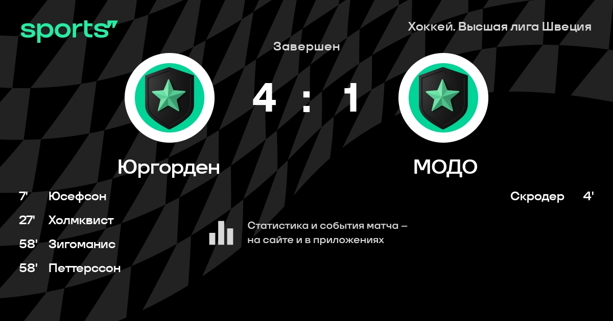В прошедшем матче в рамках турнира Хоккей. Высшая лига Швеция состоялась встреча команд Юргорден - МОДО