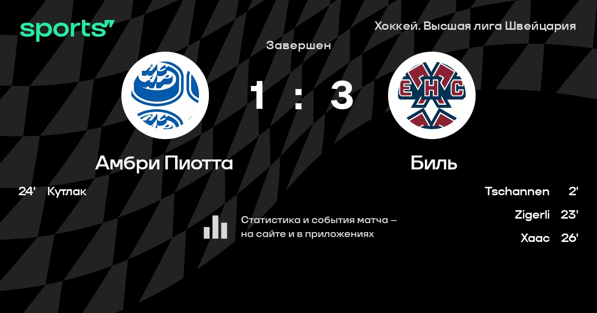 В прошедшем матче в рамках турнира Хоккей. Высшая лига Швейцария состоялась встреча команд Амбри Пиотта - Биль