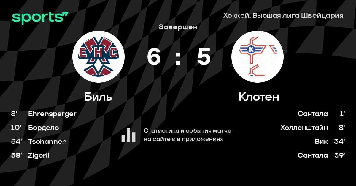 В прошедшем матче в рамках турнира Хоккей. Высшая лига Швейцария состоялась встреча команд Биль - Клотен