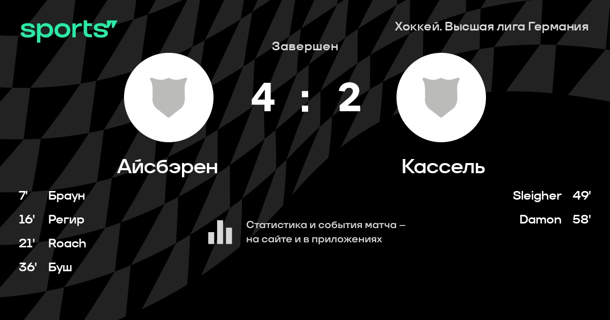 В прошедшем матче в рамках турнира Хоккей. Высшая лига Германия состоялась встреча команд Айсбэрен - Кассель