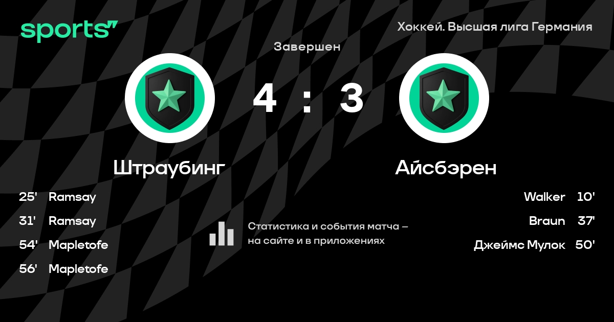 В прошедшем матче в рамках турнира Хоккей. Высшая лига Германия состоялась встреча команд Штраубинг - Айсбэрен