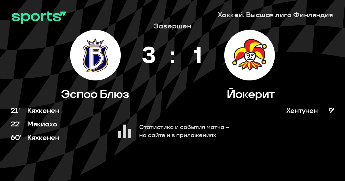 В прошедшем матче в рамках турнира Хоккей. Высшая лига Финляндия состоялась встреча команд Эспоо Блюз - Йокерит