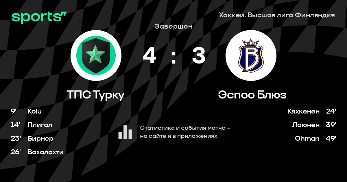 В прошедшем матче в рамках турнира Хоккей. Высшая лига Финляндия состоялась встреча команд ТПС Турку - Эспоо Блюз