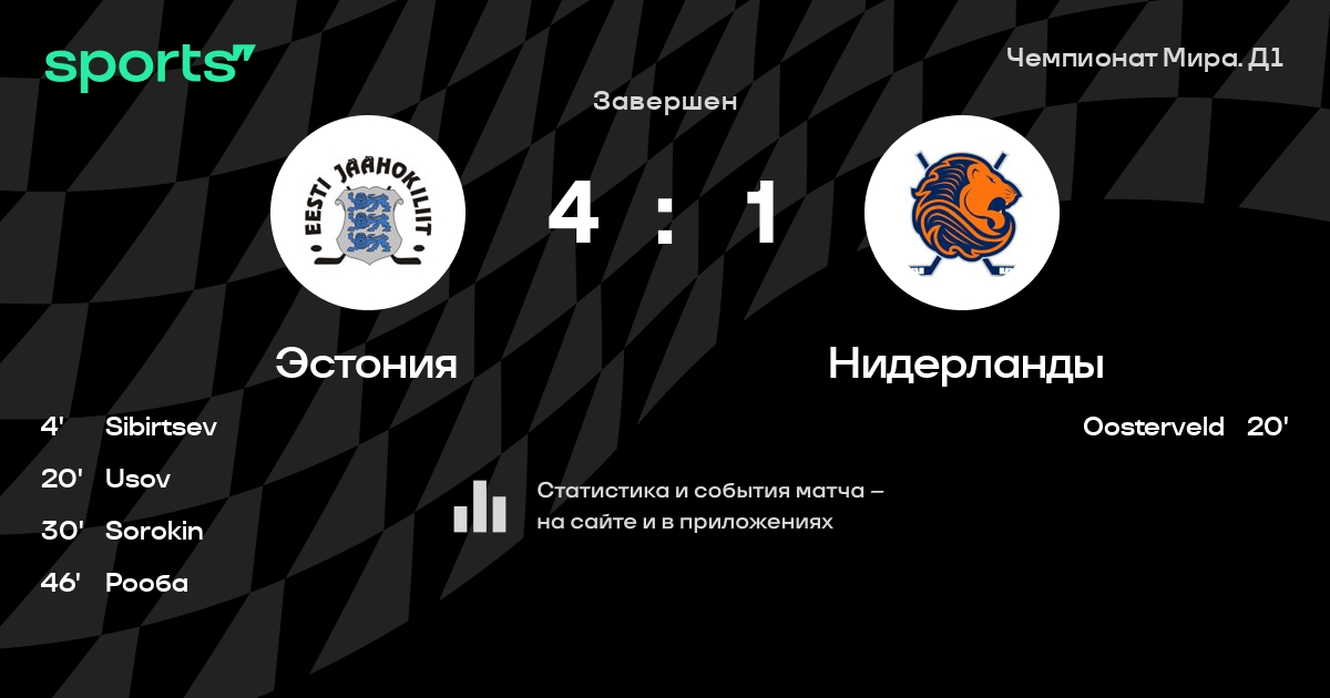 В прошедшем матче в рамках турнира Чемпионат Мира. Д1 состоялась встреча команд Эстония - Нидерланды в городе на стадионе Tallinn Tondiraba Icehall