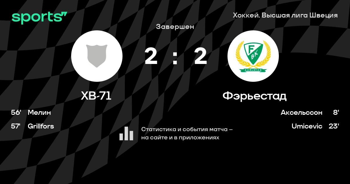 Как прошел матч, смотрите в текстовой трансляции ХВ-71 - Фэрьестад на Sports.ru