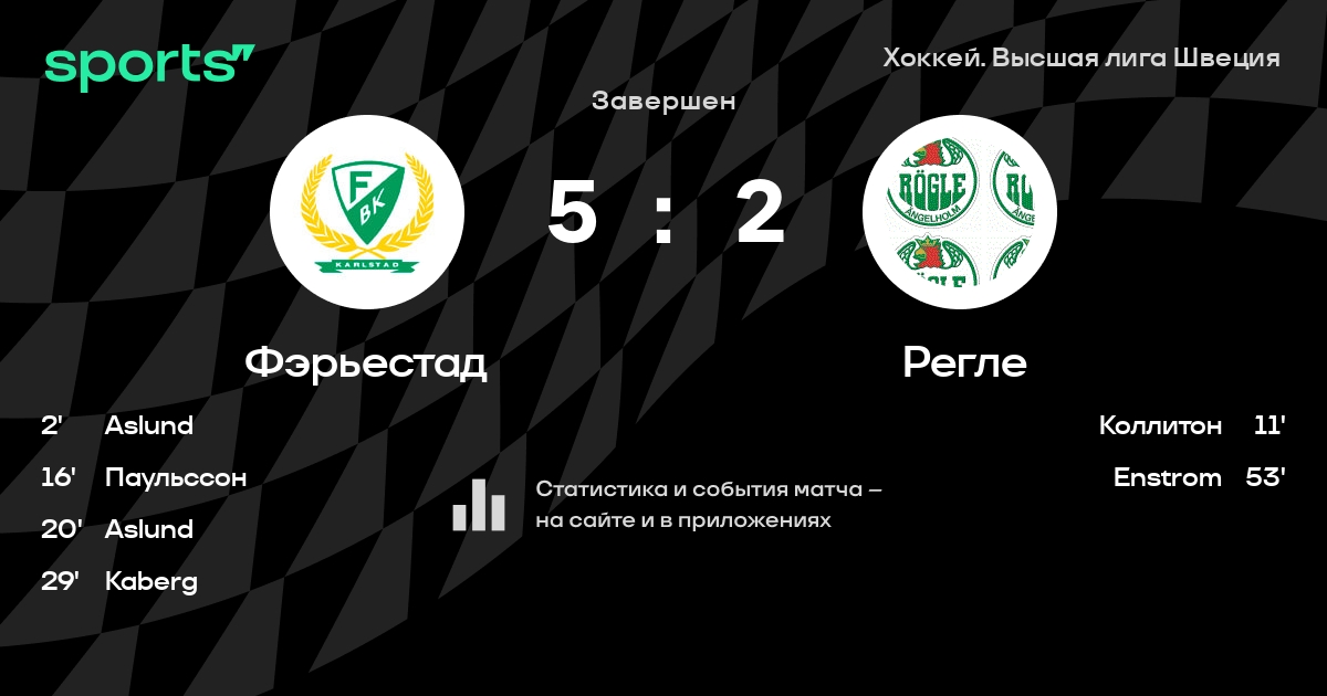 В прошедшем матче в рамках турнира Хоккей. Высшая лига Швеция состоялась встреча команд Фэрьестад - Регле