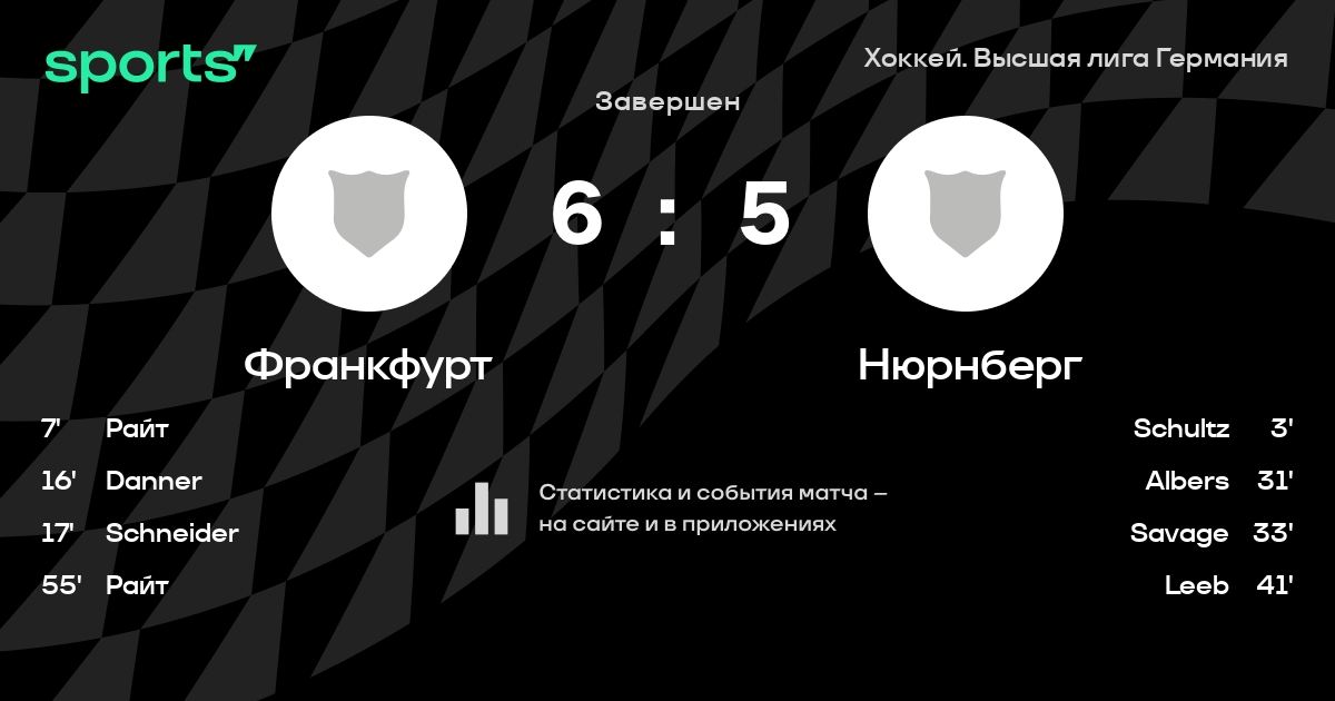 В прошедшем матче в рамках турнира Хоккей. Высшая лига Германия состоялась встреча команд Франкфурт - Нюрнберг