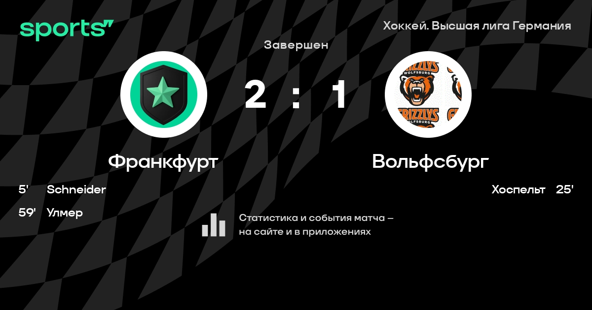 В прошедшем матче в рамках турнира Хоккей. Высшая лига Германия состоялась встреча команд Франкфурт - Вольфсбург