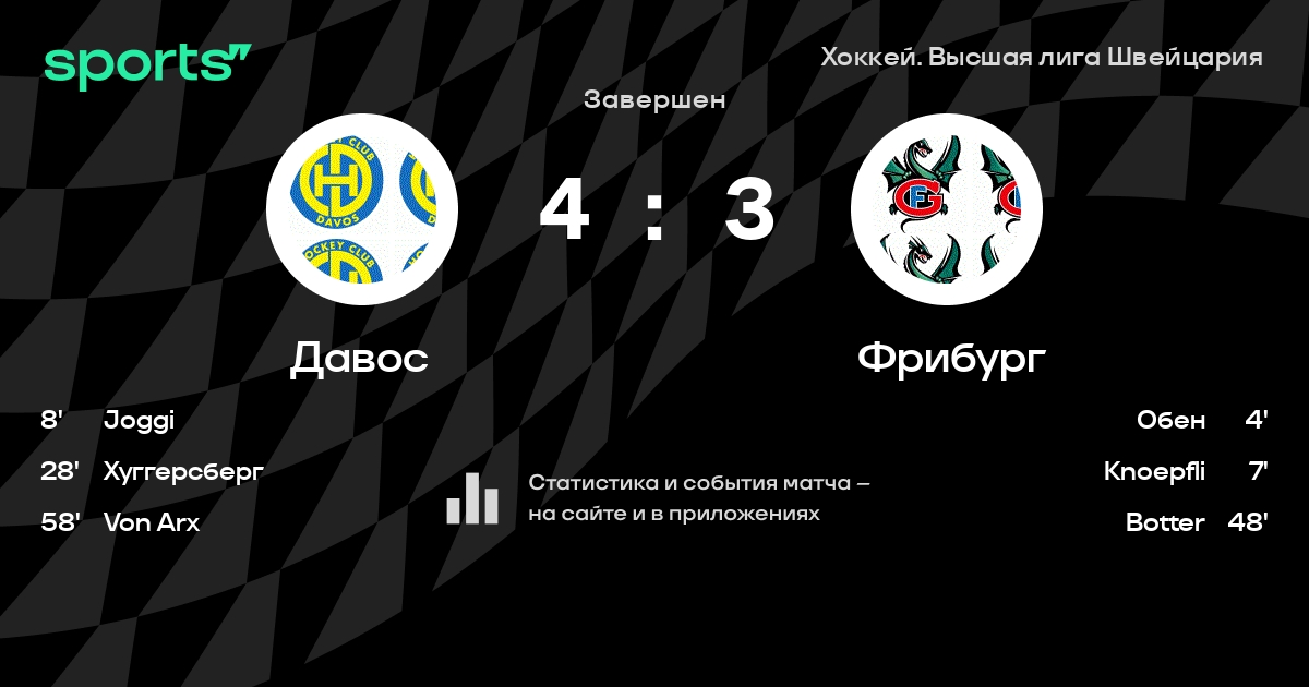В прошедшем матче в рамках турнира Хоккей. Высшая лига Швейцария состоялась встреча команд Давос - Фрибург