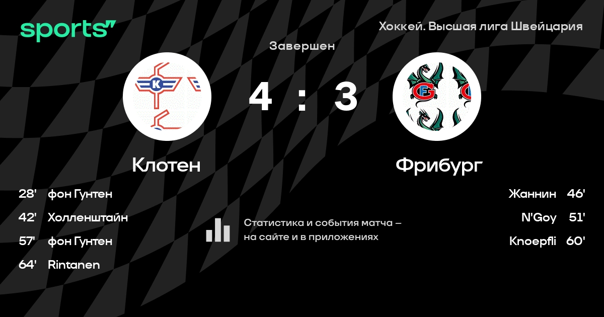 В прошедшем матче в рамках турнира Хоккей. Высшая лига Швейцария состоялась встреча команд Клотен - Фрибург