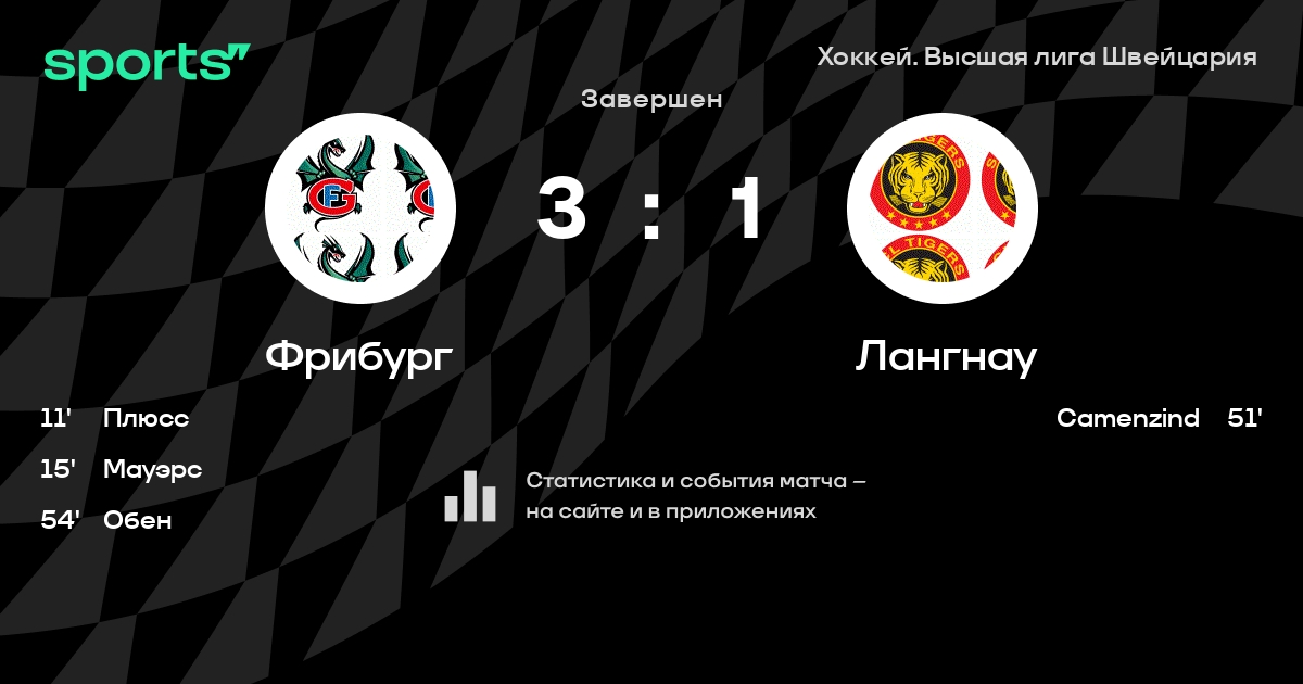 В прошедшем матче в рамках турнира Хоккей. Высшая лига Швейцария состоялась встреча команд Фрибург - Лангнау