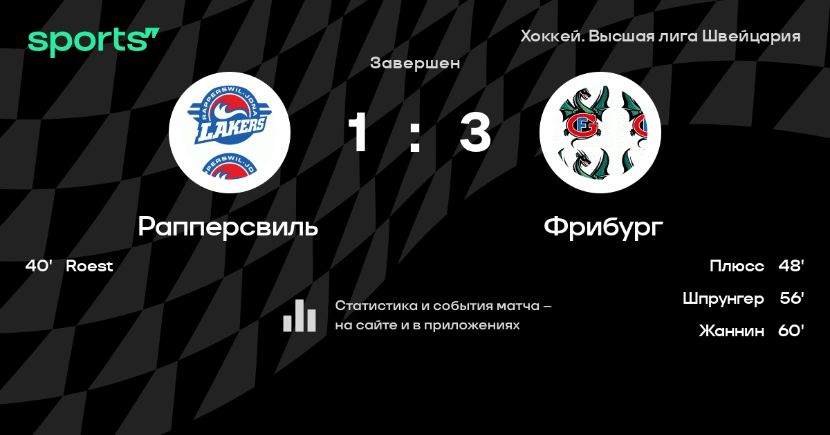 В прошедшем матче в рамках турнира Хоккей. Высшая лига Швейцария состоялась встреча команд Рапперсвиль - Фрибург