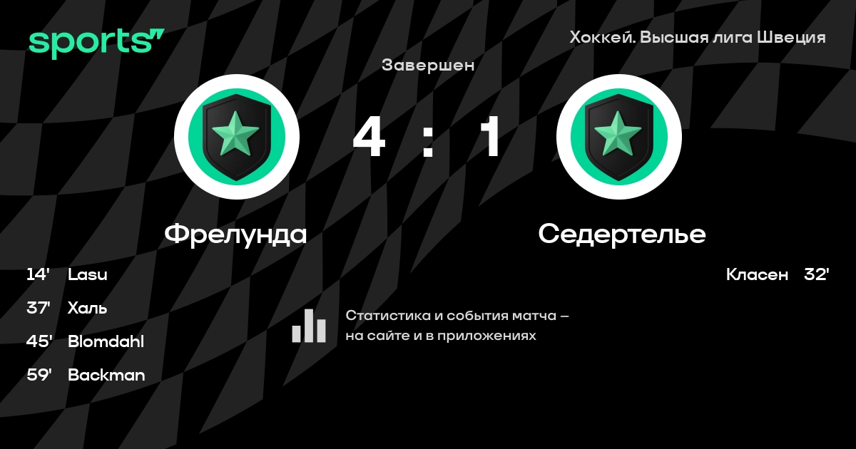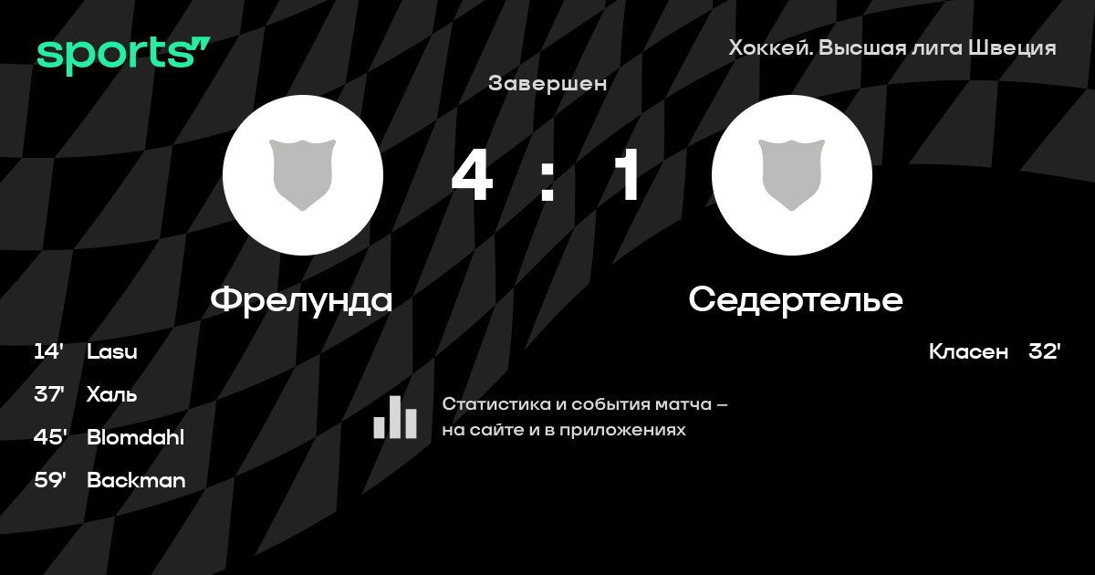 В прошедшем матче в рамках турнира Хоккей. Высшая лига Швеция состоялась встреча команд Фрелунда - Седертелье
