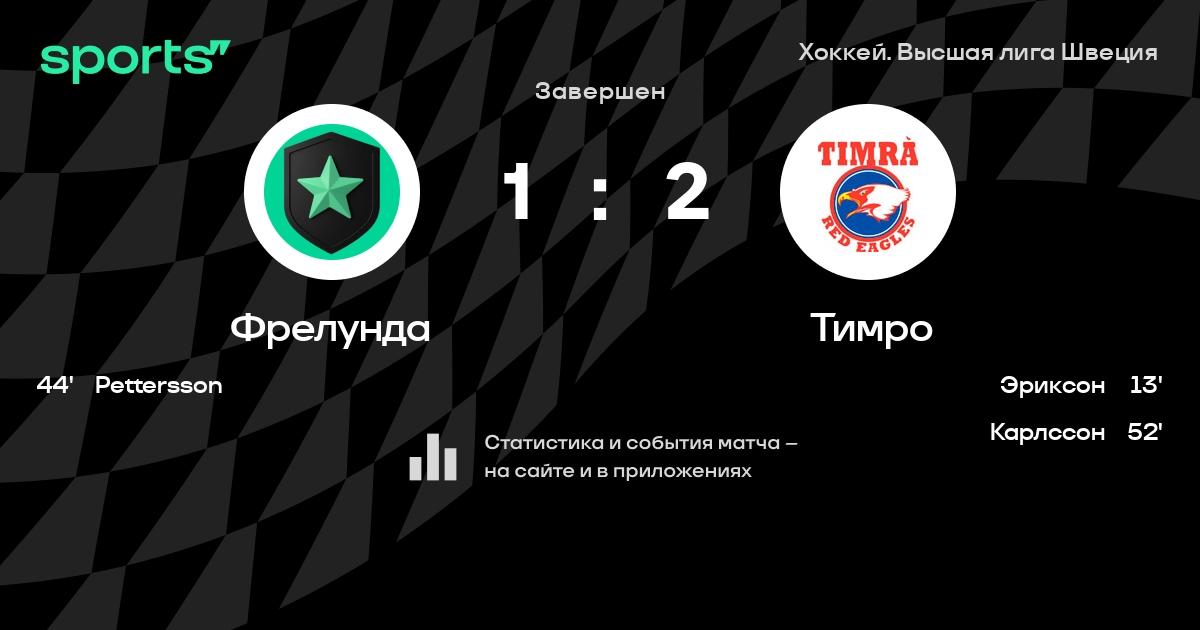 В прошедшем матче в рамках турнира Хоккей. Высшая лига Швеция состоялась встреча команд Фрелунда - Тимро