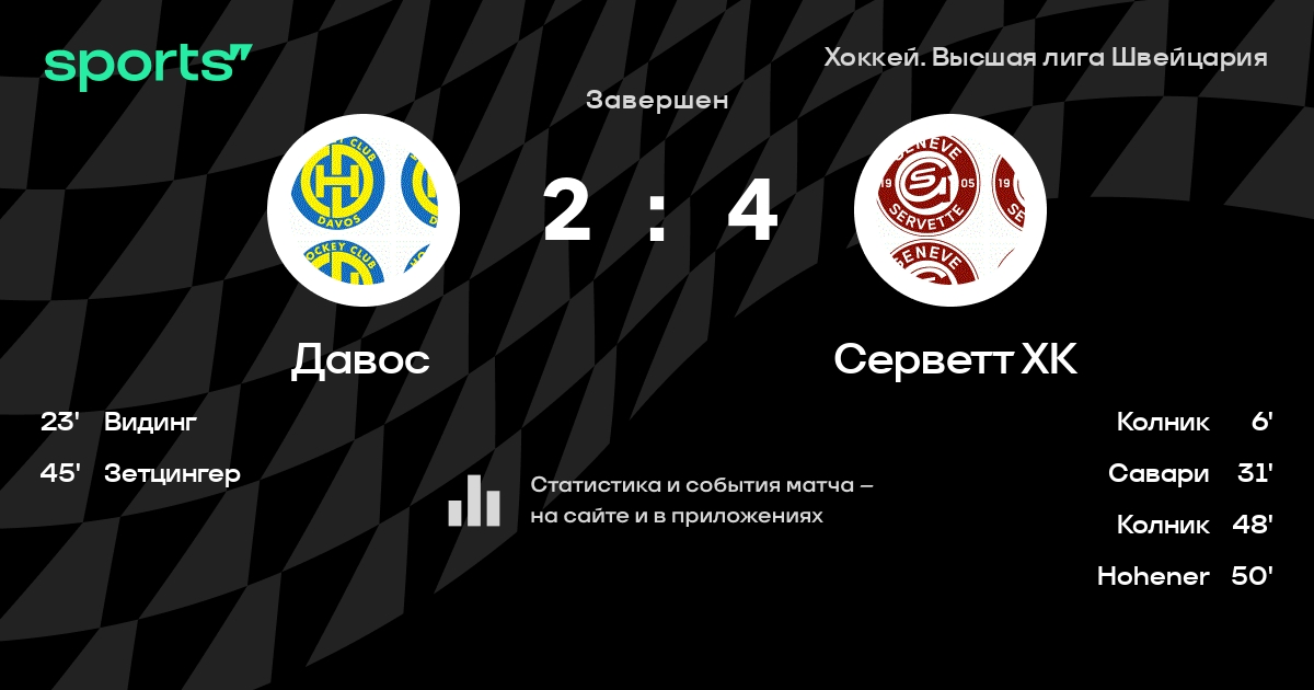 В прошедшем матче в рамках турнира Хоккей. Высшая лига Швейцария состоялась встреча команд Давос - Серветт ХК