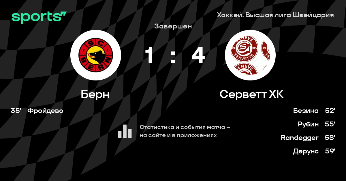 В прошедшем матче в рамках турнира Хоккей. Высшая лига Швейцария состоялась встреча команд Берн - Серветт ХК
