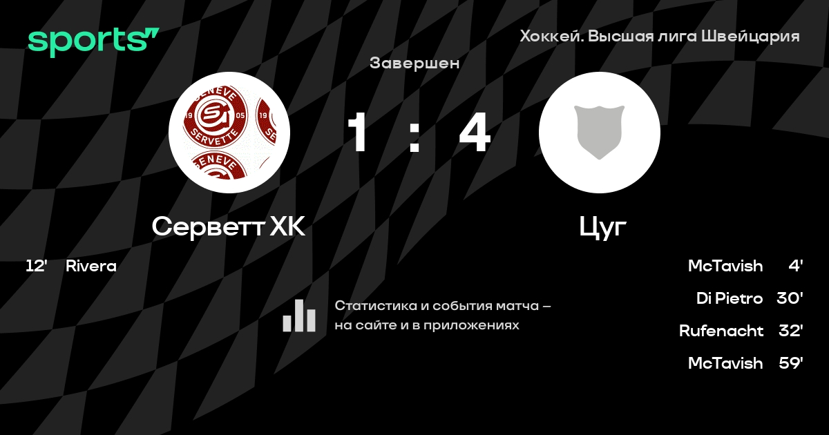 В прошедшем матче в рамках турнира Хоккей. Высшая лига Швейцария состоялась встреча команд Серветт ХК - Цуг