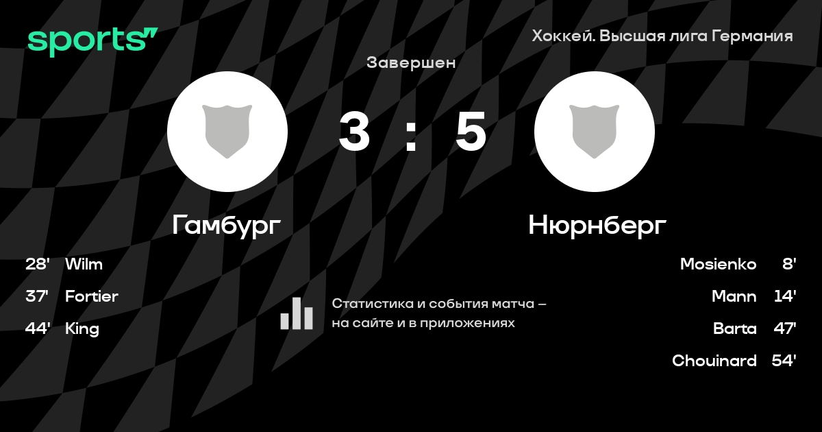 В прошедшем матче в рамках турнира Хоккей. Высшая лига Германия состоялась встреча команд Гамбург - Нюрнберг