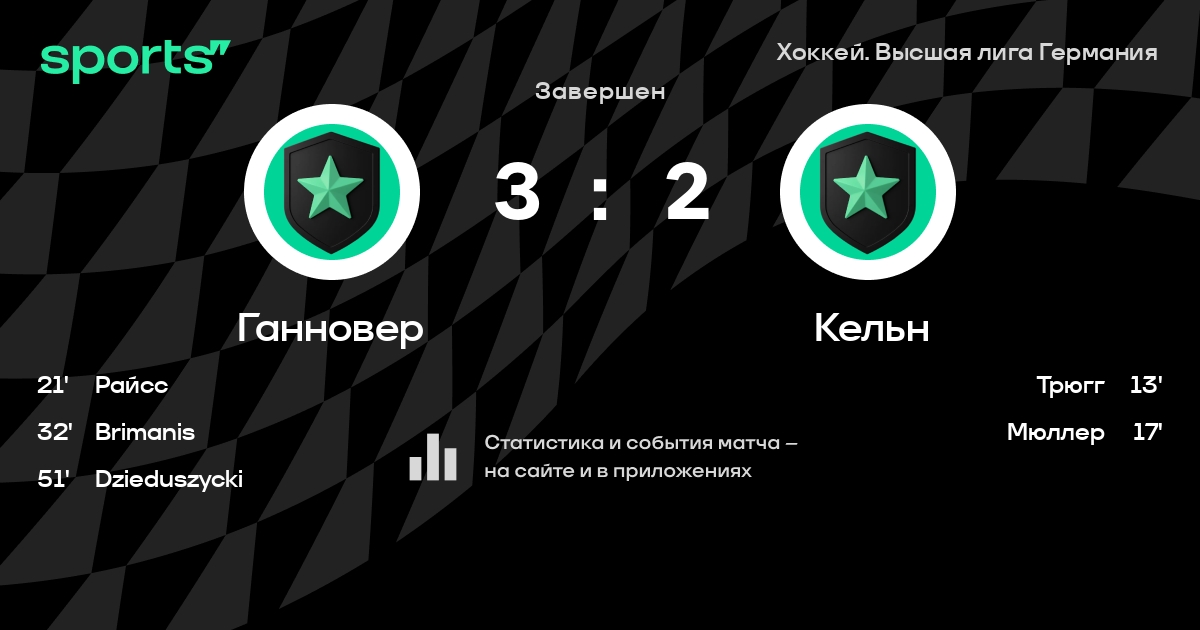 В прошедшем матче в рамках турнира Хоккей. Высшая лига Германия состоялась встреча команд Ганновер - Кельн