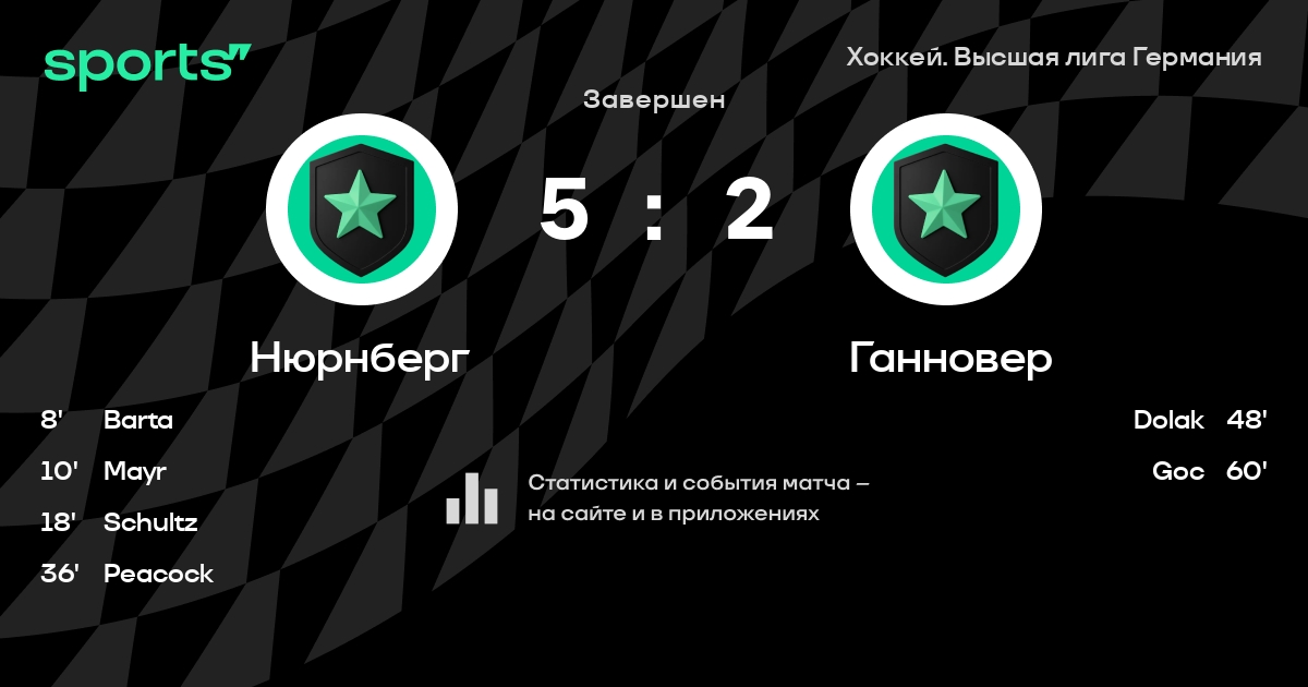 В прошедшем матче в рамках турнира Хоккей. Высшая лига Германия состоялась встреча команд Нюрнберг - Ганновер