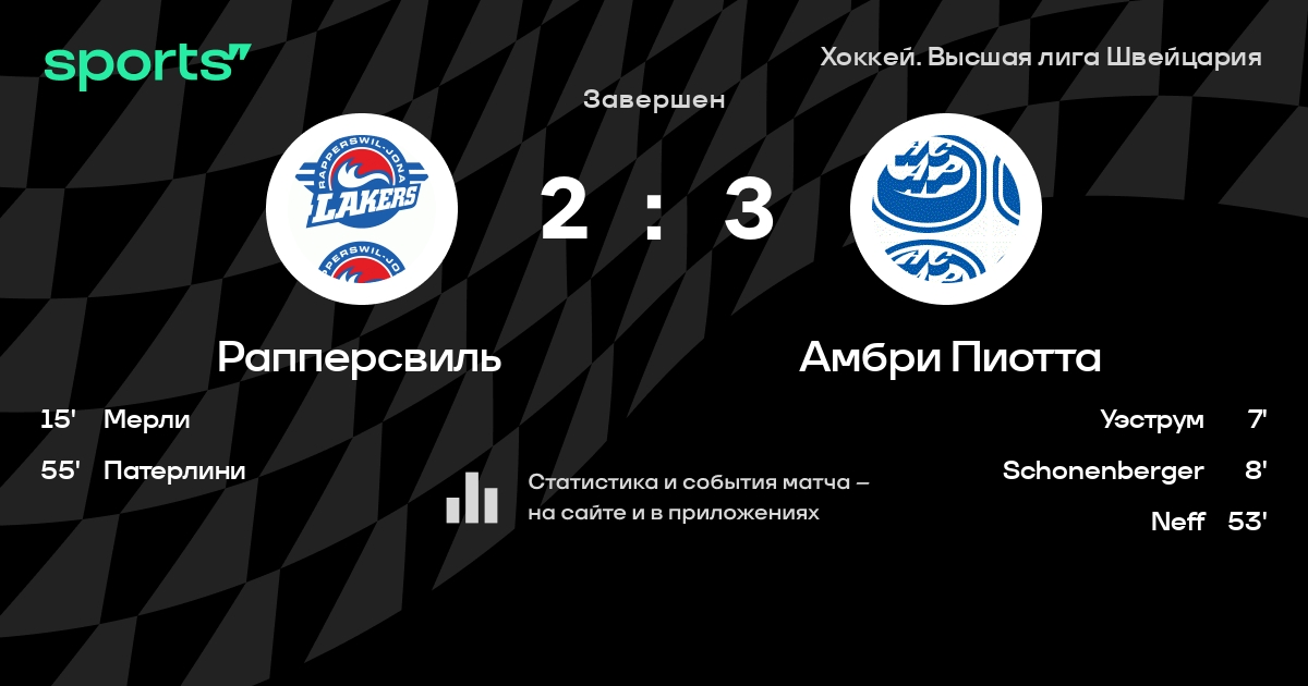 В прошедшем матче в рамках турнира Хоккей. Высшая лига Швейцария состоялась встреча команд Рапперсвиль - Амбри Пиотта