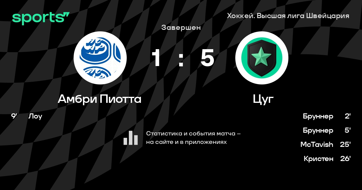 В прошедшем матче в рамках турнира Хоккей. Высшая лига Швейцария состоялась встреча команд Амбри Пиотта - Цуг