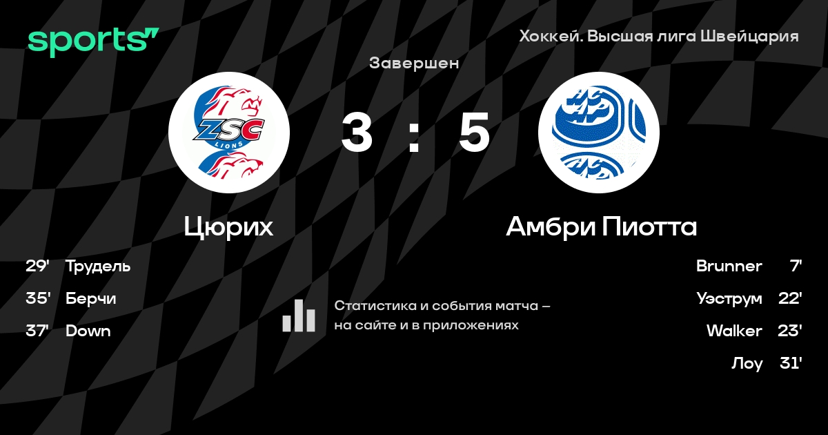 В прошедшем матче в рамках турнира Хоккей. Высшая лига Швейцария состоялась встреча команд Цюрих - Амбри Пиотта