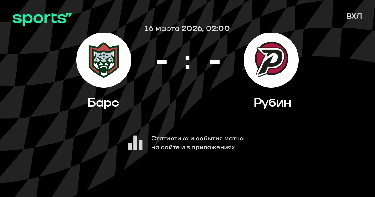 В предстоящем матче в рамках турнира ВХЛ пройдет встреча команд Барс - Рубин в городе Казань (Россия) на стадионе Дворец спорта (вместимость - 3523).