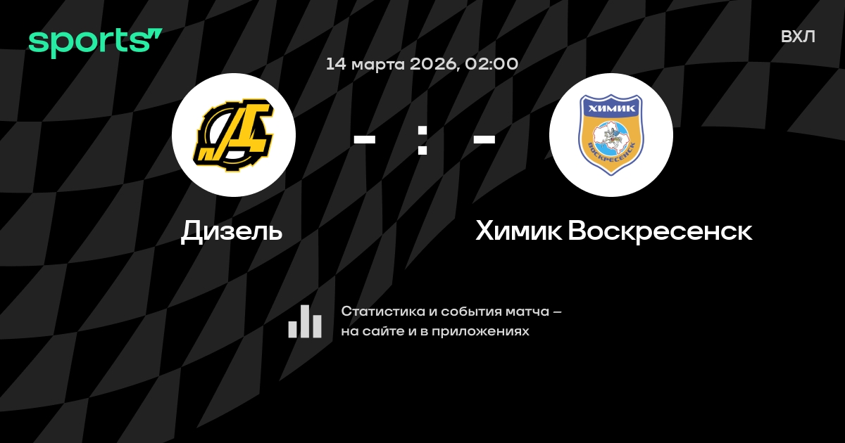 В предстоящем матче в рамках турнира ВХЛ пройдет встреча команд Дизель - Химик Воскресенск в городе на стадионе Diesel-Arena.
