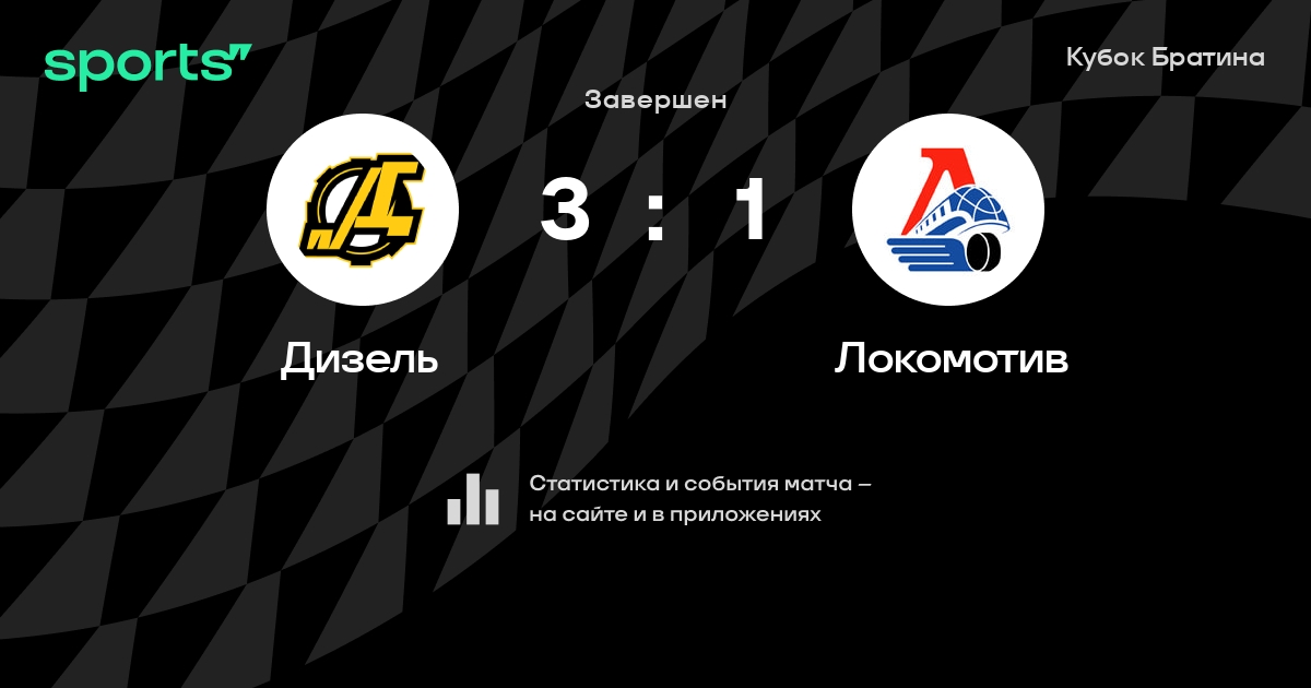 В прошедшем матче в рамках турнира Кубок Братина (Четвертьфинал) состоялась встреча команд Дизель - Локомотив